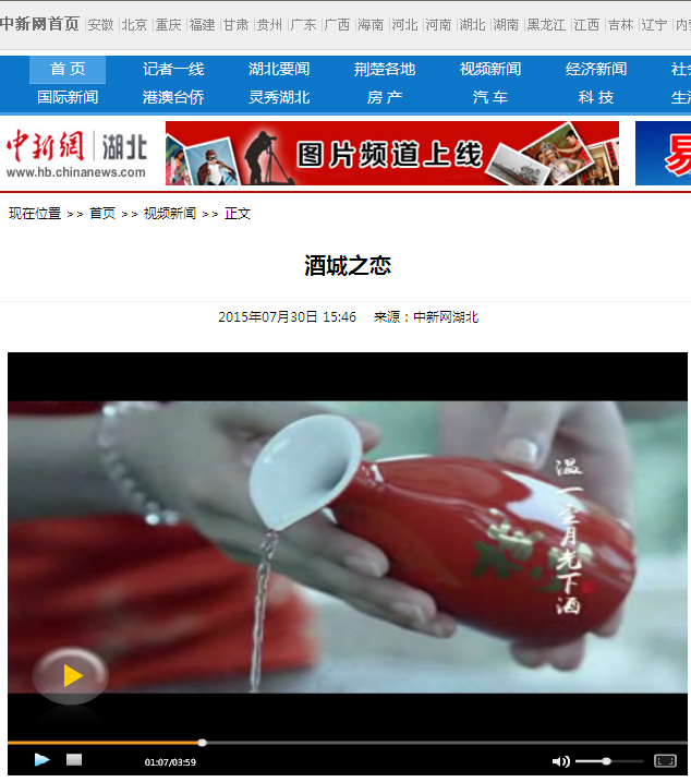7月30日,中新網(wǎng)湖北新聞力推《酒城之戀》MV視頻。由枝江酒業(yè)聯(lián)合武漢世紀藝人文化傳播有限公司拍攝的歌曲《酒城之戀》視頻7月27日正式由騰訊…