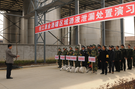 3月17日下午3時,在枝江酒業(yè)新竣工投產(chǎn)的2萬噸基酒車間儲酒庫,枝江酒業(yè)2011年度首次消防演習(xí)如期舉行,此次演習(xí)圍繞“酒罐區(qū)域酒液泄露處置…
