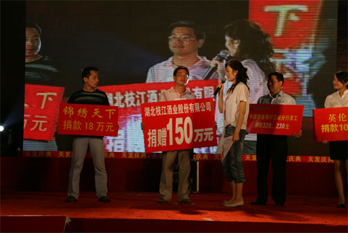 5月13日,枝江酒業(yè)公司工會向全體員工發(fā)出向四川震區(qū)災(zāi)民獻(xiàn)愛心的倡儀,公司員工紛紛慷慨解囊,短短兩天就已收到捐款25萬元,其中公司董事長…