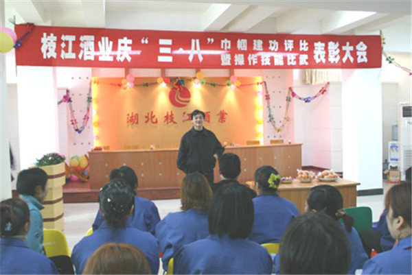 3月7日,枝江酒業(yè)公司組織了慶“三八”巾幗建功表彰大會(huì)、操作比武大賽和職工趣味活動(dòng)。本次活動(dòng)由公司工青婦委共同組織,邀請(qǐng)公司董事會(huì)領(lǐng)導(dǎo)參加,對(duì)“三八”紅旗手和先進(jìn)勞動(dòng)模范進(jìn)行了表彰?!?/a>