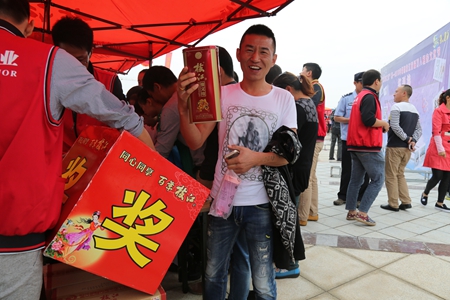 枝江酒業(yè)借用這樣的熱鬧場面,在相親活動(dòng)現(xiàn)場進(jìn)行微信掃碼贈(zèng)酒活動(dòng),吸引了前來參加相親活動(dòng)的各階層人士。在現(xiàn)場展示的產(chǎn)品有枝江王、百年枝江韻系列產(chǎn)品、情義結(jié)、謙泰吉1號(hào)、苦蕎酒等。參與者只要現(xiàn)場關(guān)注枝江酒業(yè)微信公眾號(hào),分享到朋友圈,即可獲得一次抽獎(jiǎng)的機(jī)會(huì),分別會(huì)抽出“十五年經(jīng)典”、“枝江情義結(jié)”、“小金版枝江王”、“小苦蕎酒”等不同價(jià)位的枝江酒。枝江酒業(yè)曾經(jīng)在今年夏天,利用枝江市納涼晚會(huì)舉行微信掃碼贈(zèng)酒活動(dòng),與枝江市民有效互動(dòng),讓枝江人“家家抱得美酒歸”成為酒城風(fēng)景,而在此次相親節(jié)上,在“千年等一回”的浪漫中,“相親抱得美酒歸”又一次成為枝江這座中國白酒名城的風(fēng)景。枝江市婦聯(lián)準(zhǔn)備了豐富的文藝節(jié)目,在舞臺(tái)的大屏幕上,重復(fù)播放著枝江酒業(yè)出品的《酒城之戀》畫面,有一位現(xiàn)在枝江工作的外地小伙子說,希望能在枝江收獲一段像《酒城之戀》中的愛情故事。