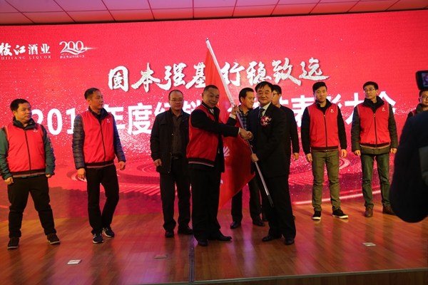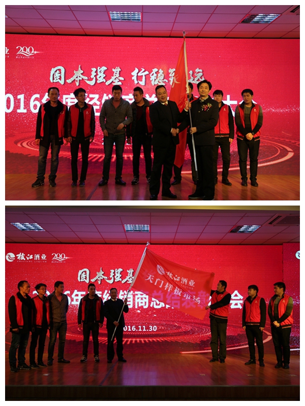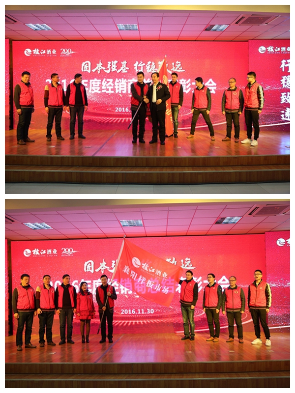 2016年是枝江酒業(yè)伴隨行業(yè)發(fā)展變化而深度調(diào)整的一年,是面對(duì)壓力克難奮進(jìn)的一年,是廠商協(xié)力穩(wěn)步向前的一年,也是枝江酒業(yè)實(shí)施大單品戰(zhàn)略的第一年。2016年在廠商共同努力下,全國(guó)各地涌現(xiàn)出一批貢獻(xiàn)突出、成長(zhǎng)迅速、轉(zhuǎn)型發(fā)展、推新績(jī)優(yōu)、精誠(chéng)合作的經(jīng)銷商代表,通過(guò)銷售財(cái)務(wù)的數(shù)據(jù)對(duì)比和全面評(píng)估,經(jīng)公司研究決定,授予鄧州福泉商貿(mào)有限公司等四家單位為2016年度突出貢獻(xiàn)獎(jiǎng);授予枝江市新富貴酒行等四家單位為2016年度新品推廣獎(jiǎng);授予安陸市昌盛名酒商行等四家單位為2016年度精誠(chéng)合作獎(jiǎng);授予武漢市蔡甸區(qū)本來(lái)副食商店等四家單位為2016年度營(yíng)銷轉(zhuǎn)型獎(jiǎng);授予桐柏金達(dá)貿(mào)易有限公司等四家單位為2016年度高速成長(zhǎng)獎(jiǎng)。